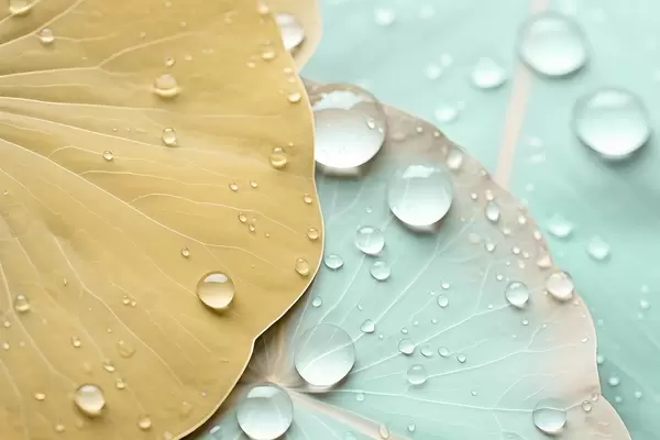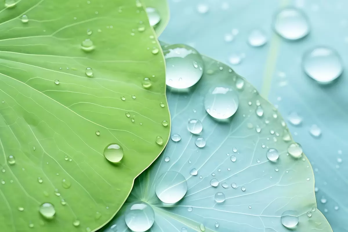Fototapet Vattendroppar på blad makro akvarell Nr. w04838