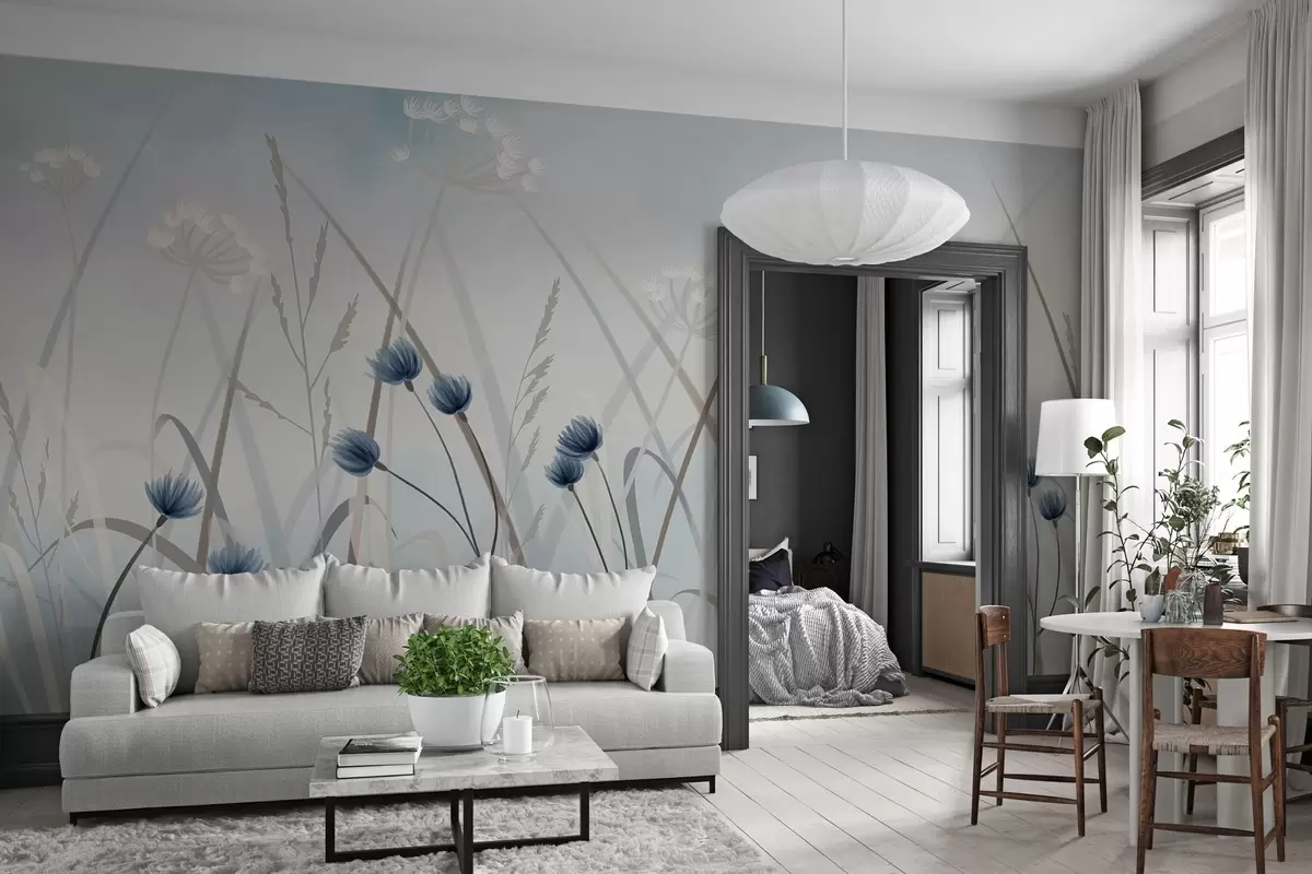 Fototapet Målade gräs och blommor Nr. w04900