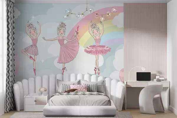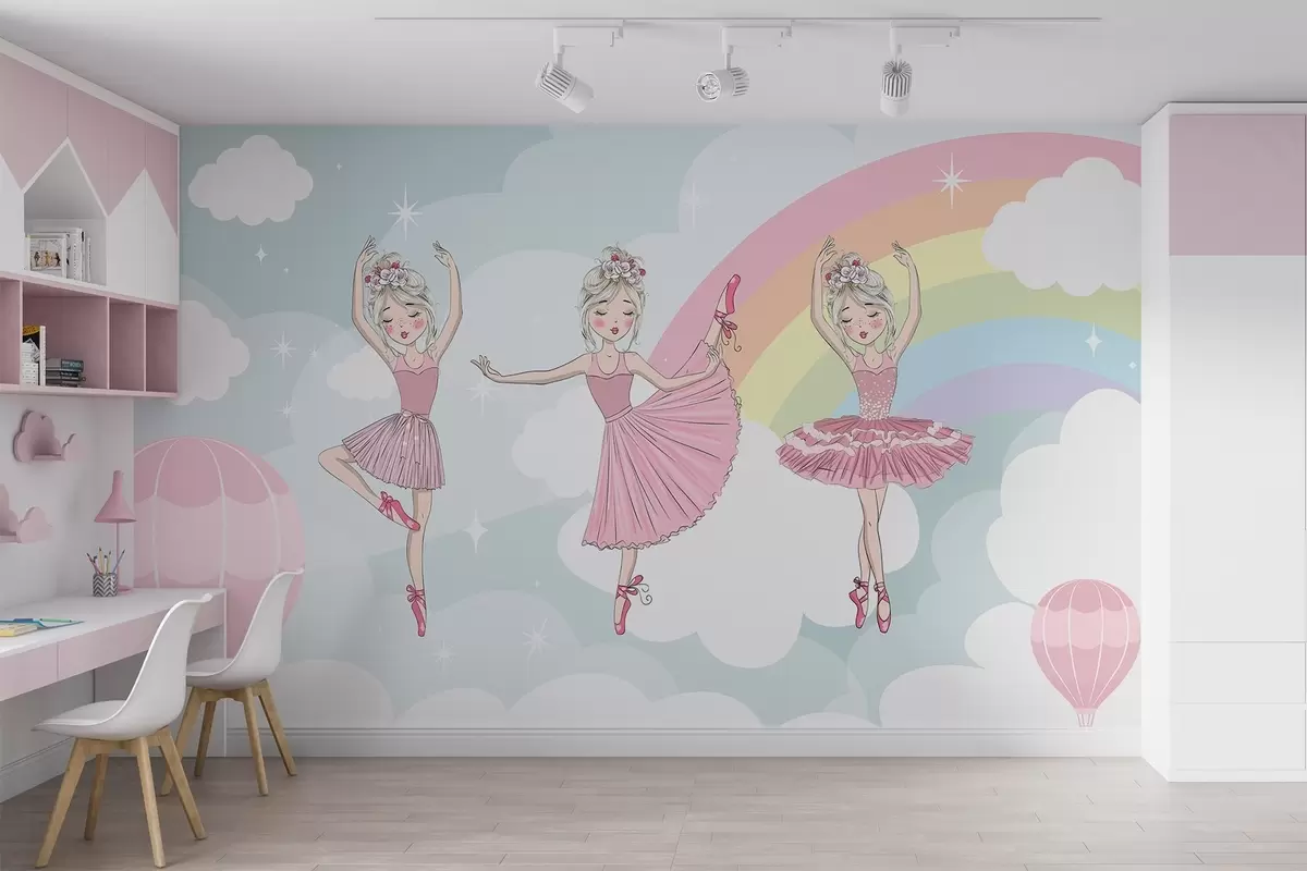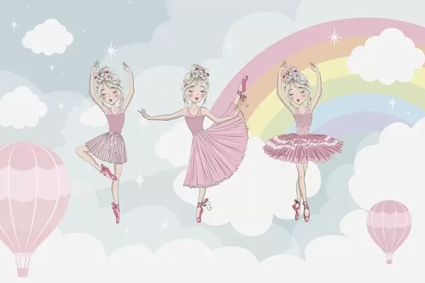Fototapet Prinsessor mot bakgrunden av himlen och regnbågen Nr. w04907