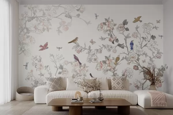Fototapet Fåglar nära grenar med blommor Nr. w04939