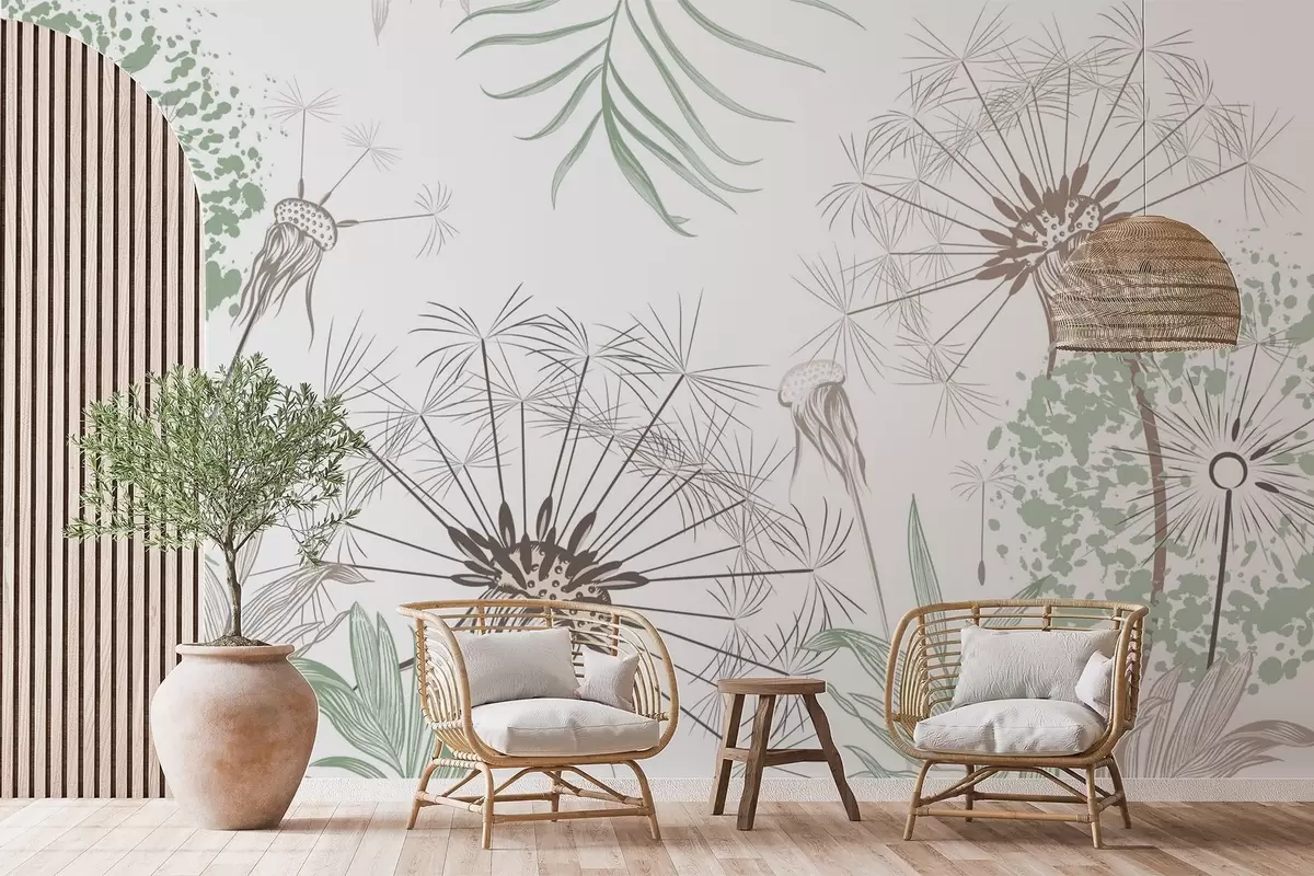 Fototapet Maskrosor bland lövverket Nr. w04942v1