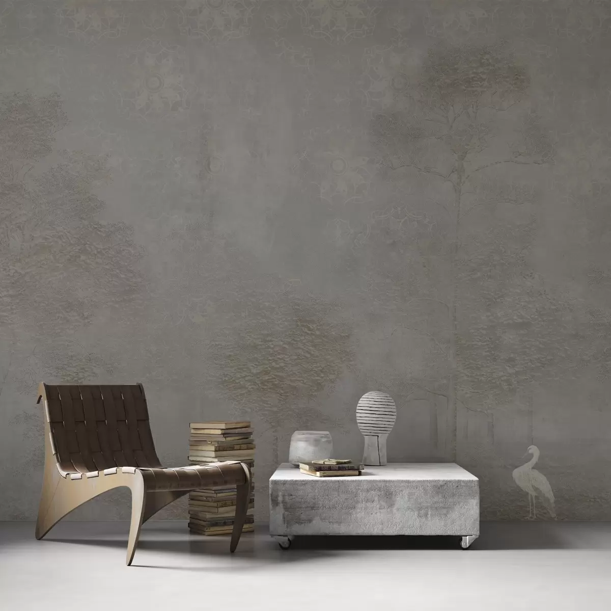 Fototapet Dimskog med en häger och ett ornamentmönster ovanför Nr. w04953v1