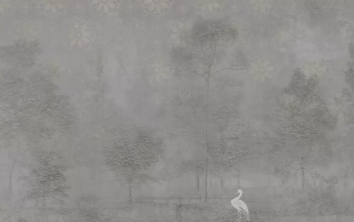 Fototapet Ljus dimskog med en häger i svala gråtoner Nr. w04953v2