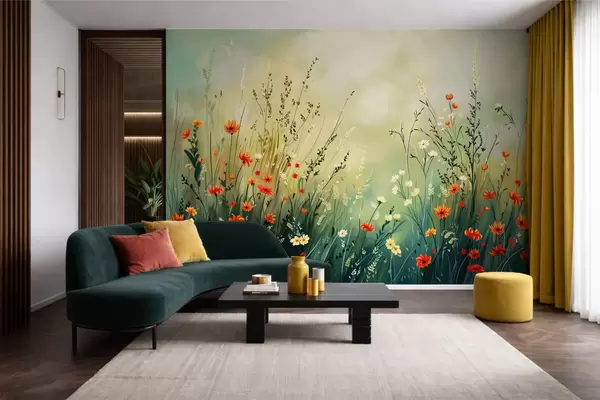Fototapet Ängblommor och gräs i mjuk, målerisk stil Nr. w05015