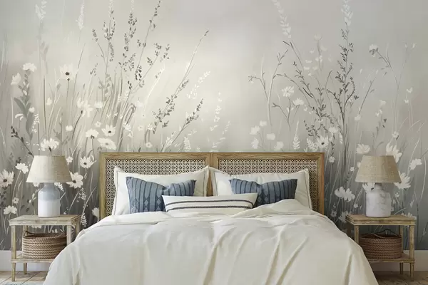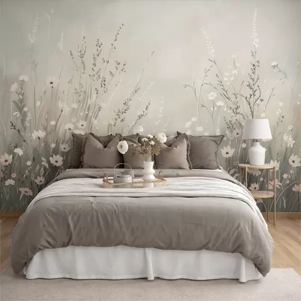 Fototapet Mjuk ängsbild med vita blommor och fina gräs Nr. w05015v1