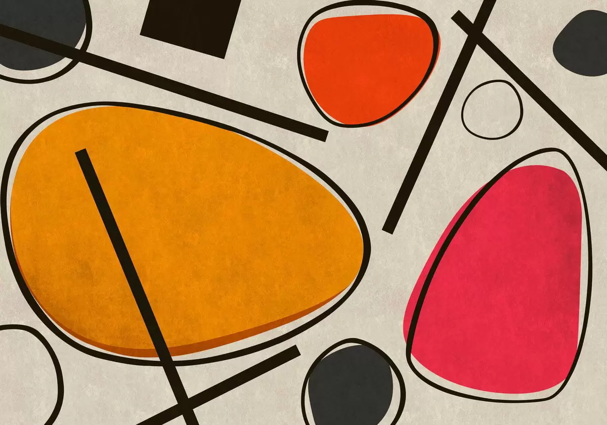 Fototapet Abstrakta former och linjer med djärva färgfält Nr. w05017