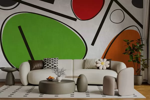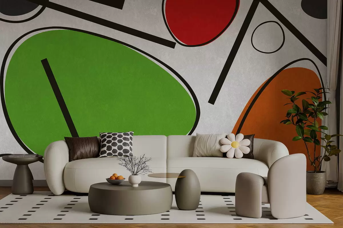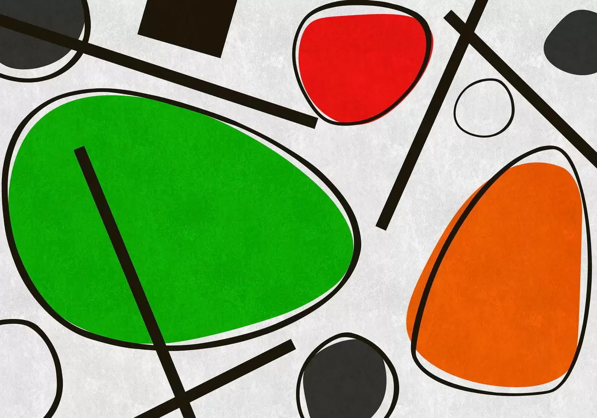 Fototapet Abstrakta geometriska former med linjer och djärva färgytor Nr. w05017v1
