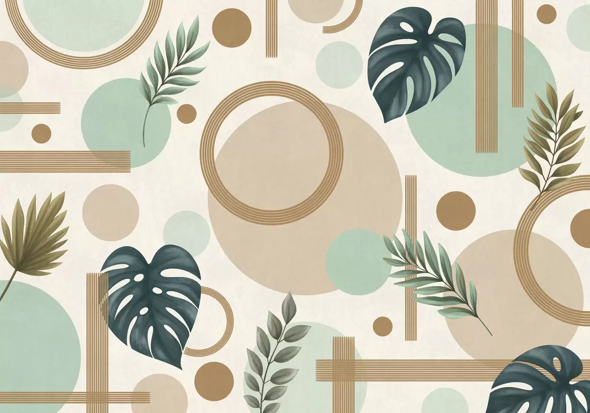 Fototapet Geometriskt mönster med blad i gröna nyanser Nr. w05018v1