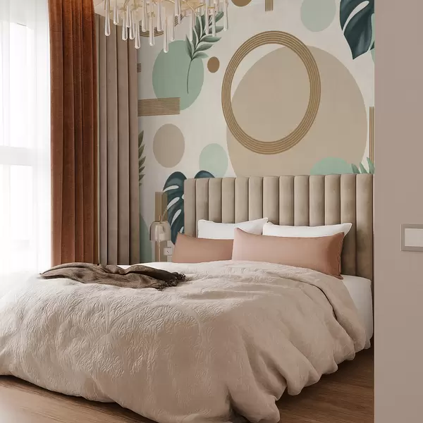 Fototapet Geometriskt mönster med blad i gröna nyanser Nr. w05018v1