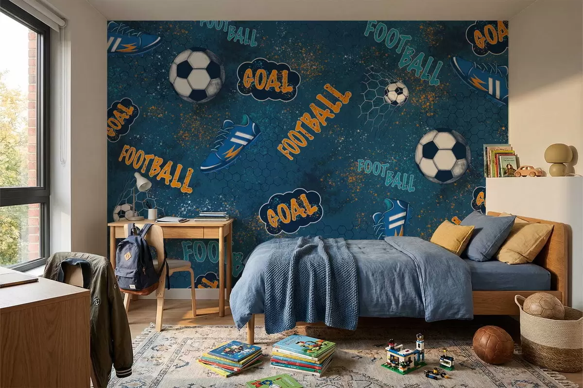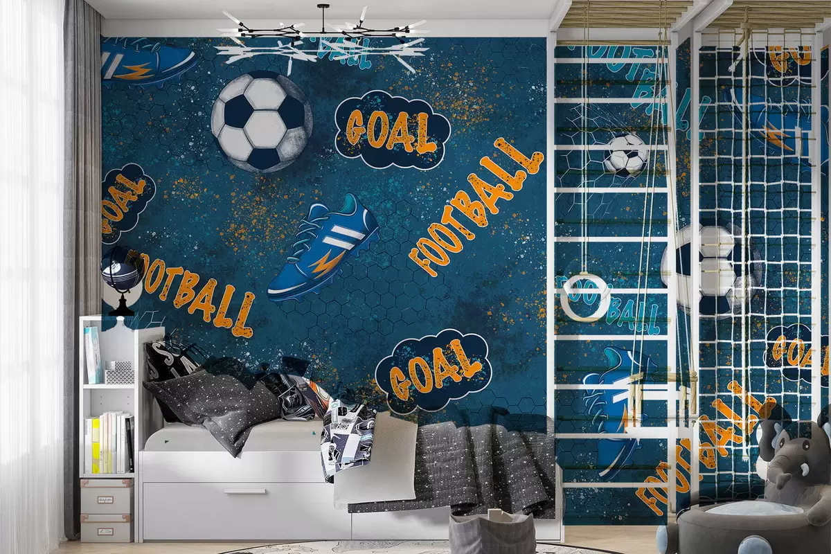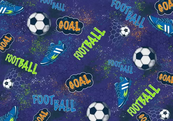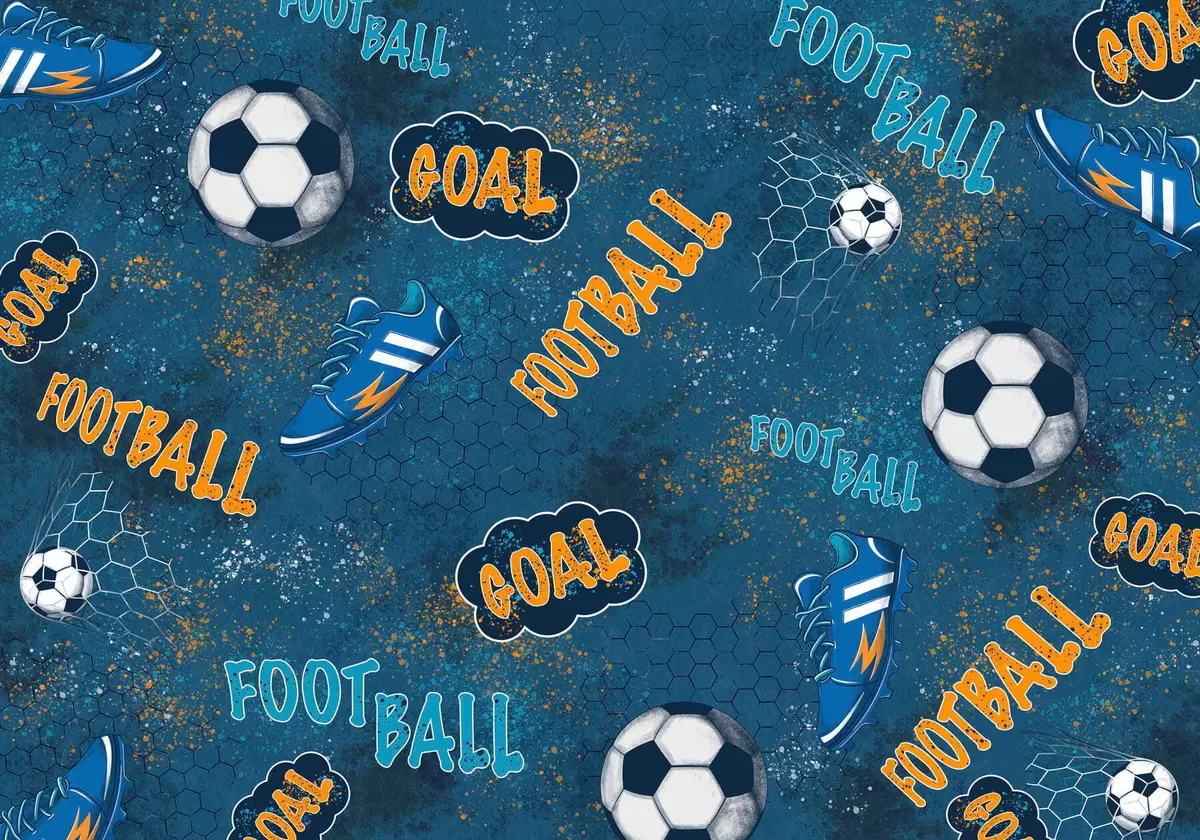 Fototapet Barnmönster med bollar, skor och sportiga ord Nr. w05037