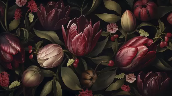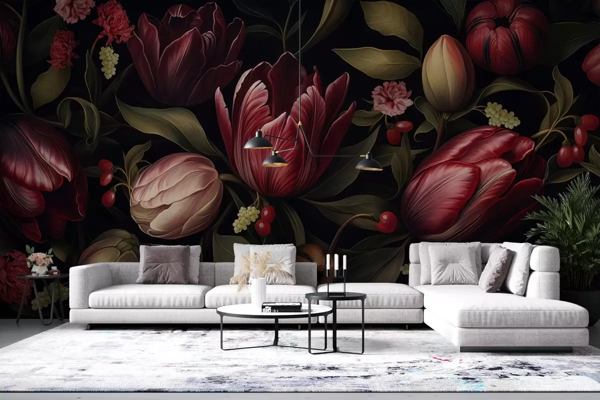 Fototapet Mörk tulpanträdgård Nr. w05038