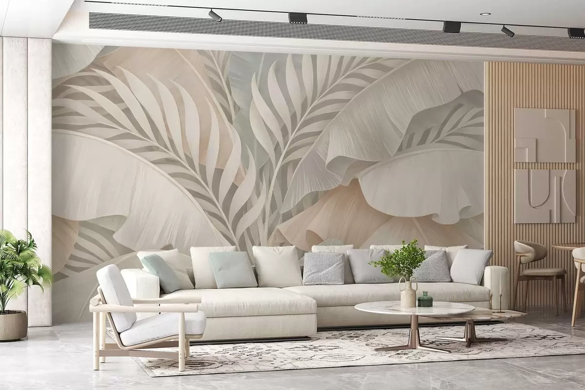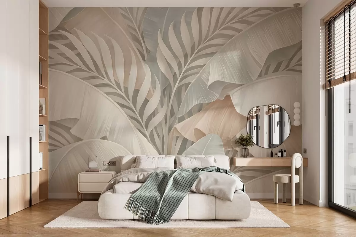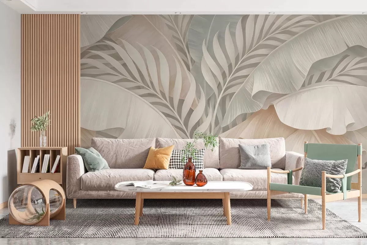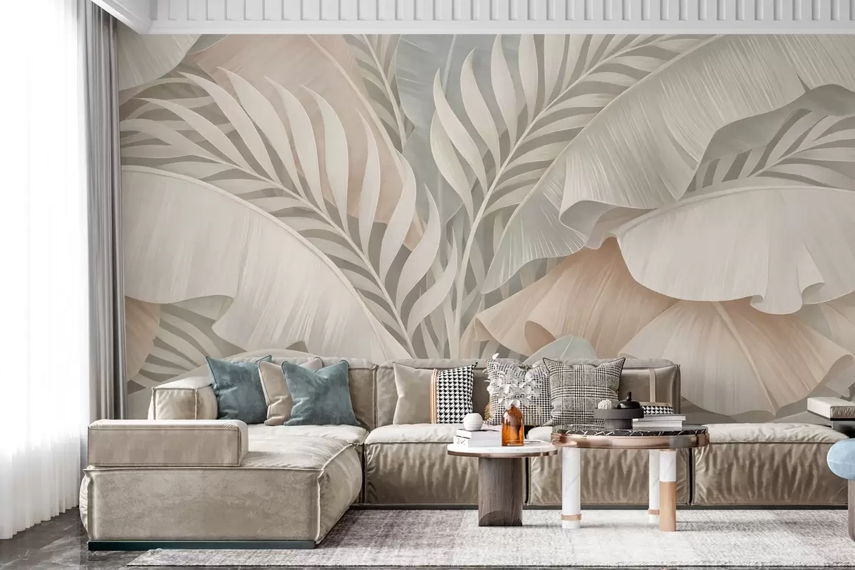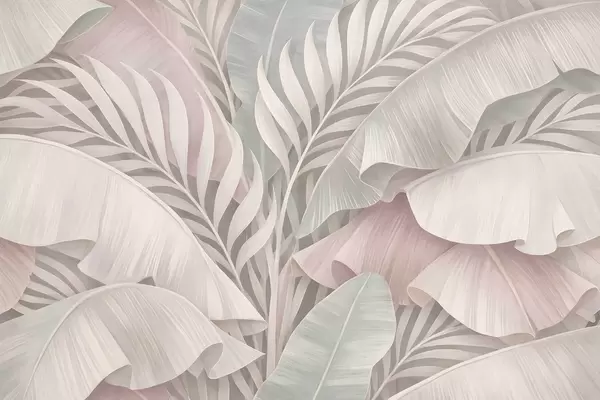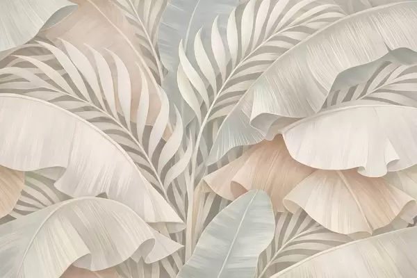 Fototapet stora tropiska blad i nyanser av persika och matt turkos Nr. w05062