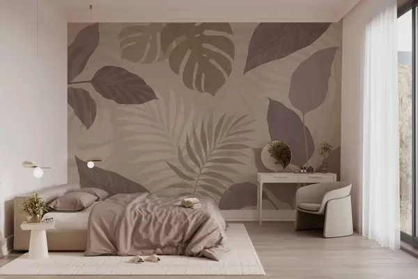 Fototapet strukturerade tropiska blad på sandig bakgrund Nr. w05063