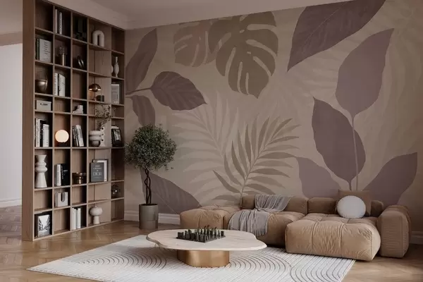 Fototapet strukturerade tropiska blad på sandig bakgrund Nr. w05063