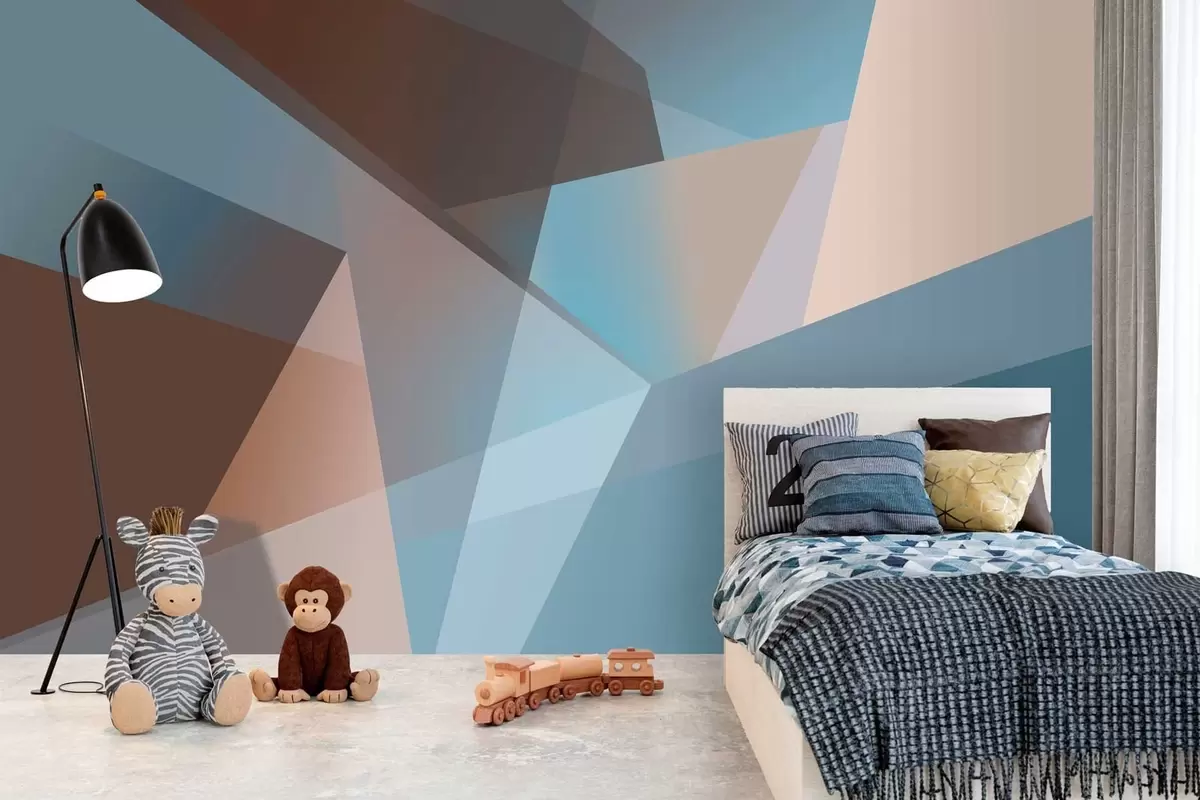Fototapet abstrakt geometri i blå och bruna toner Nr. w05064