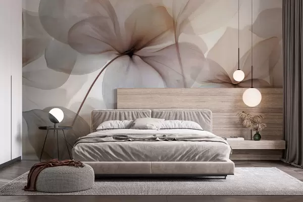 Fototapet halvtransparenta blommor med ådror Nr. w05070