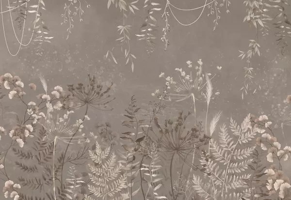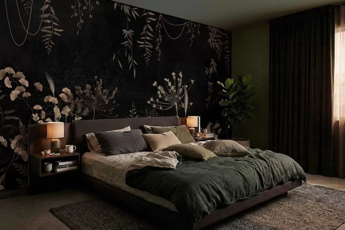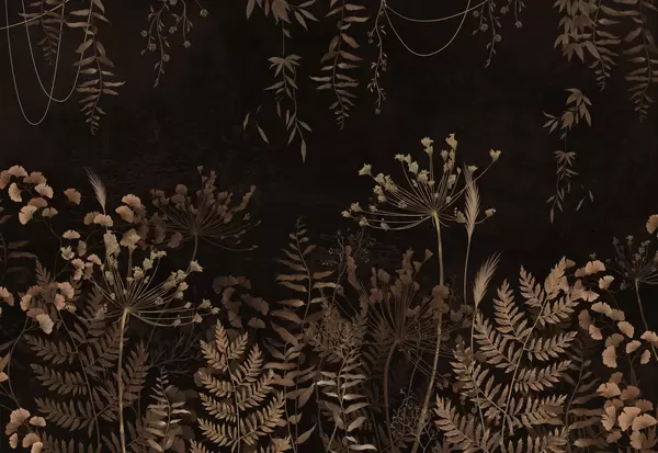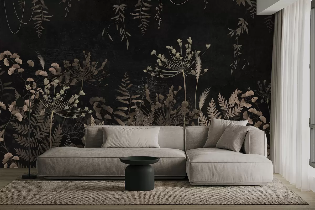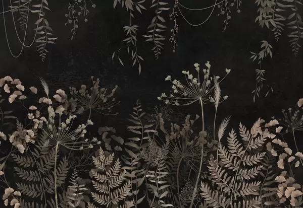 Fototapet Mörkt botaniskt mönster med blommor och blad Nr. w05092