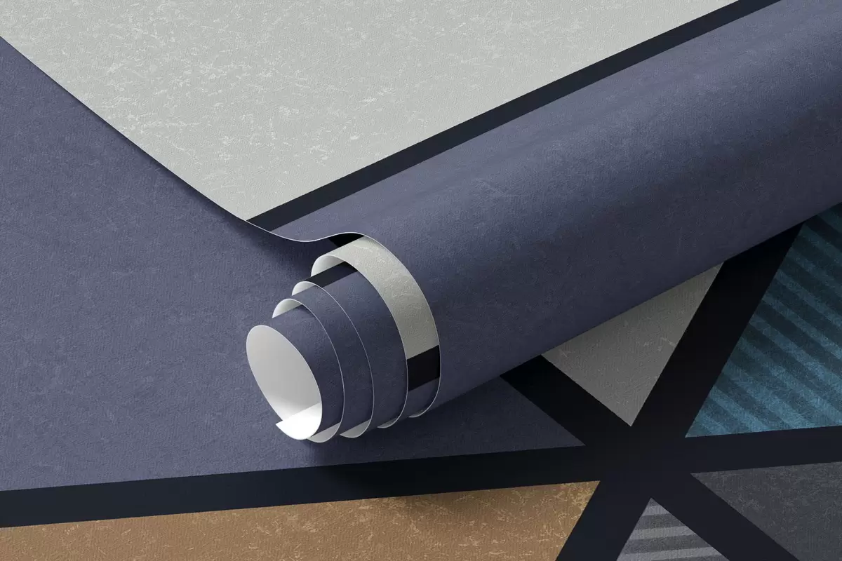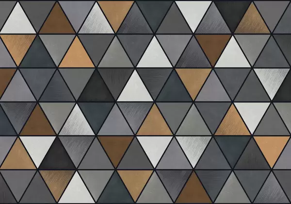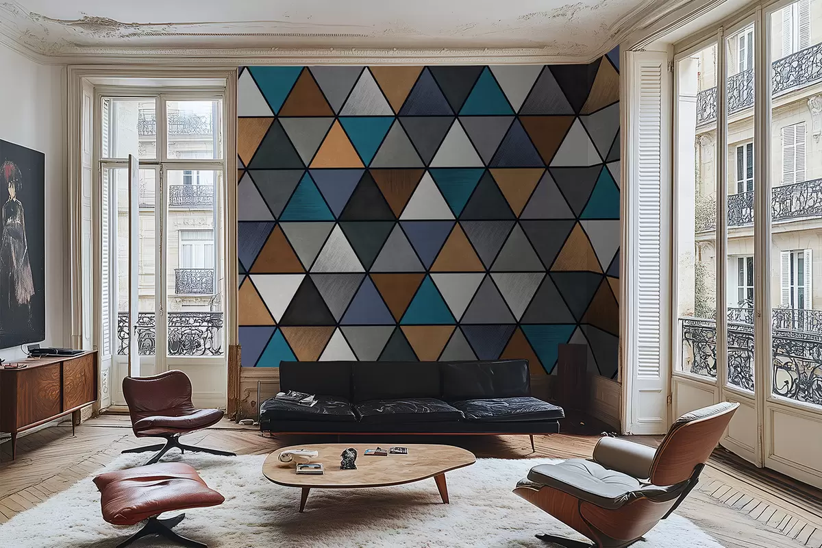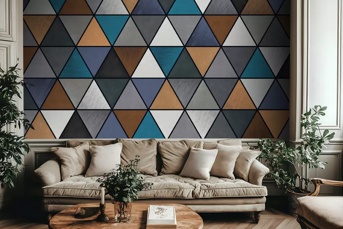 Fototapet Triangulärt geometriskt mönster i blått och varma toner Nr. w05095