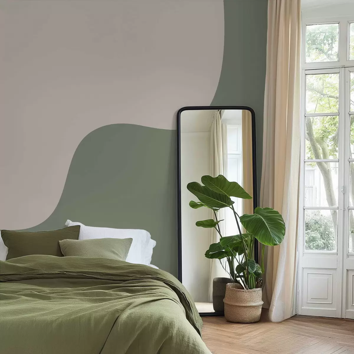Fototapet Mjuka abstrakta former i ljusbeige och gröna nyanser Nr. w05097