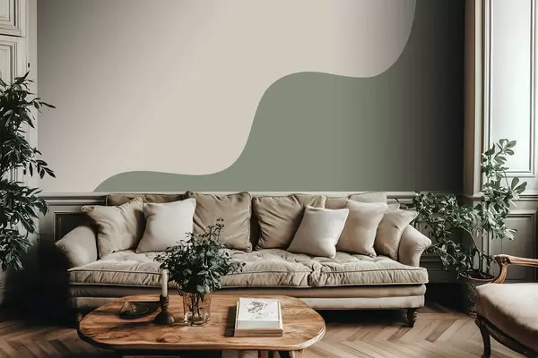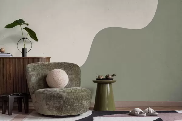 Fototapet Mjuka abstrakta former i ljusbeige och gröna nyanser Nr. w05097