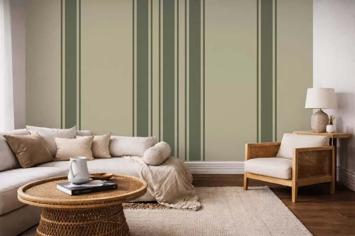 Fototapet Vertikala ränder i dämpade gröna och beige nyanser Nr. w05098