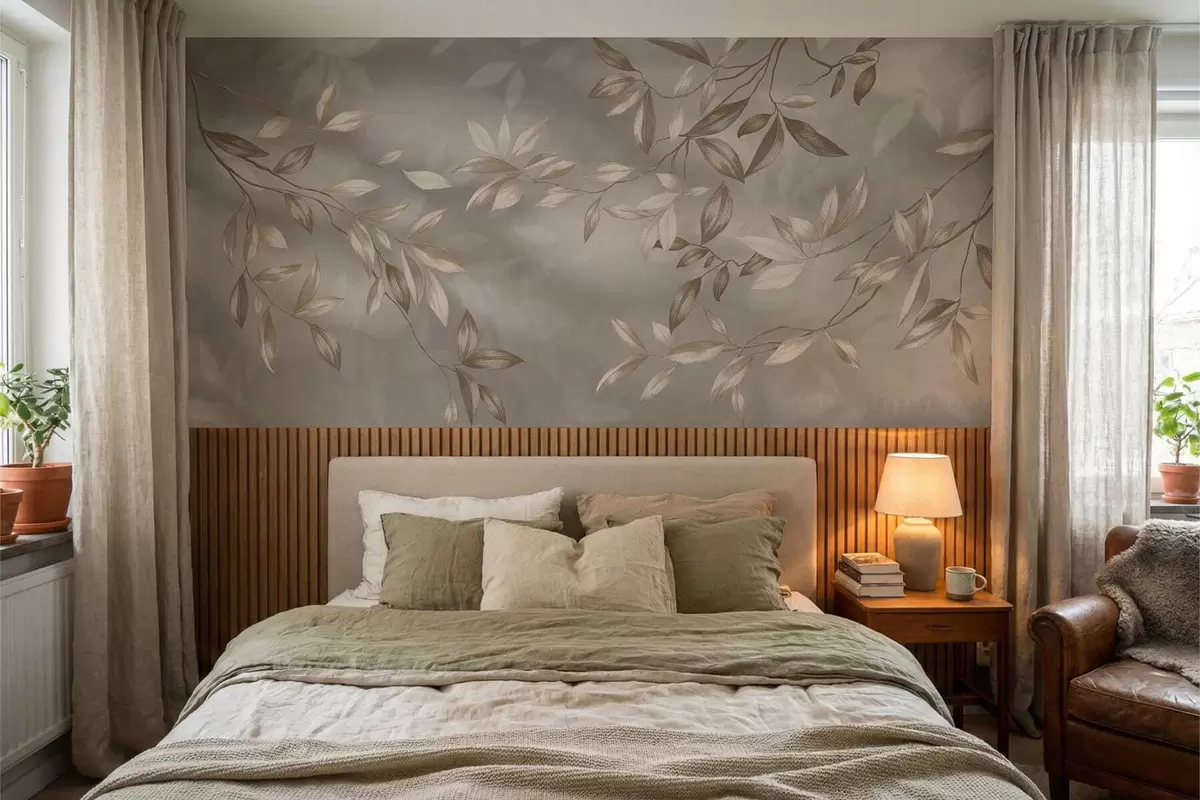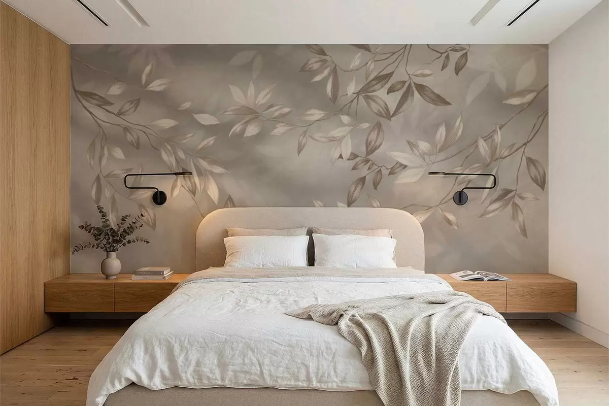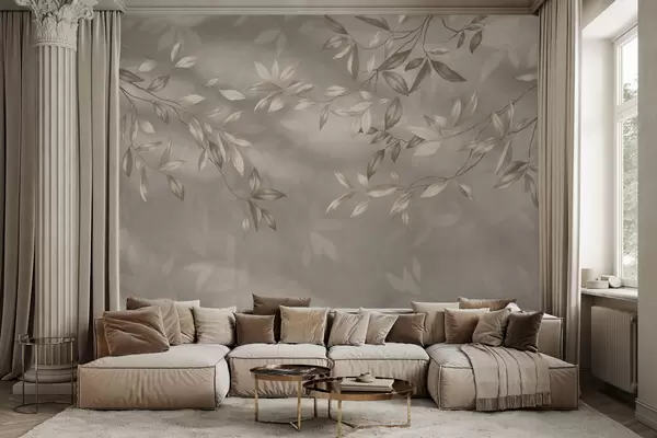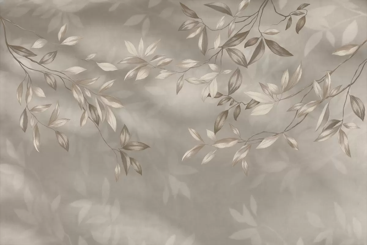 Fototapet Eleganta bladrika grenar i beige nyanser på en ljus bakgrund Nr. w05113