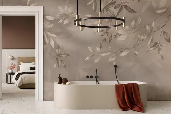 Fototapet Eleganta bladrika grenar i beige nyanser på en ljus bakgrund Nr. w05113
