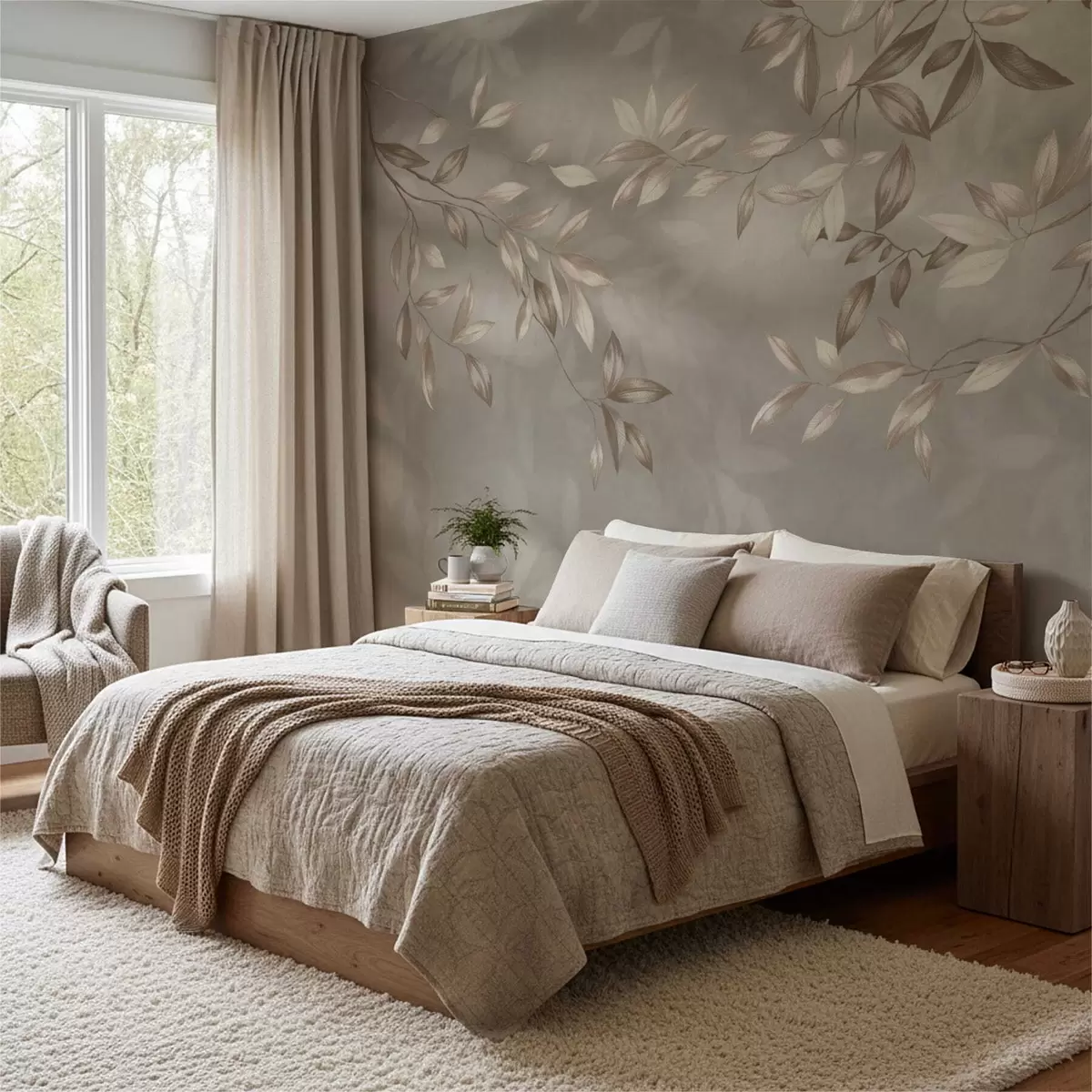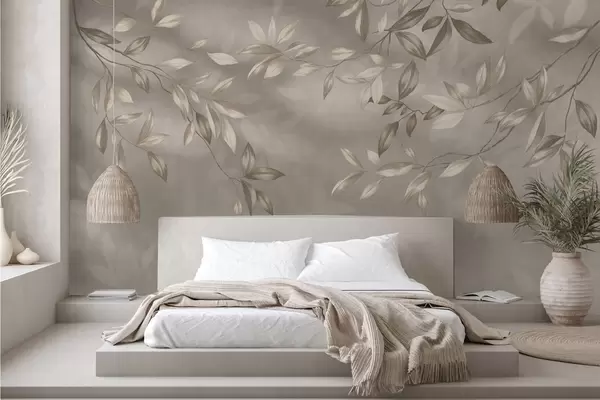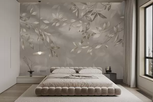 Fototapet Eleganta bladrika grenar i beige nyanser på en ljus bakgrund Nr. w05113
