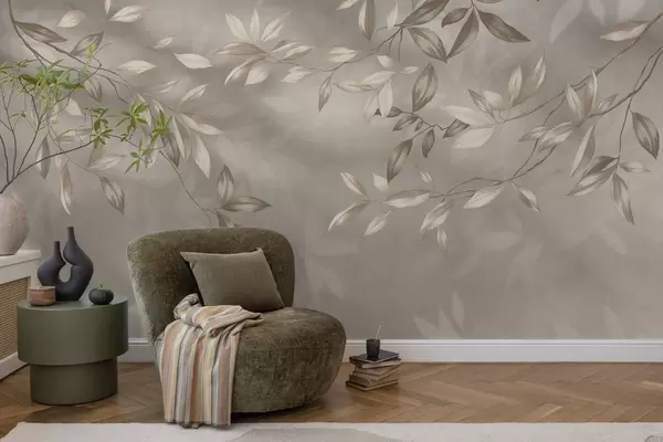 Fototapet Eleganta bladrika grenar i beige nyanser på en ljus bakgrund Nr. w05113