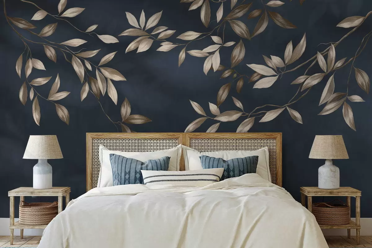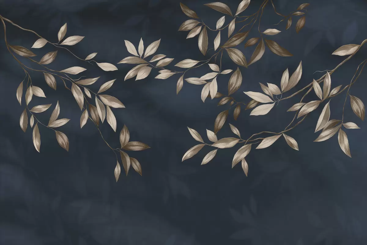Fototapet Dekorativa bladrika grenar på en djupblå bakgrund Nr. w05113v1