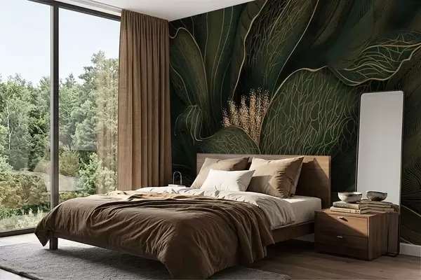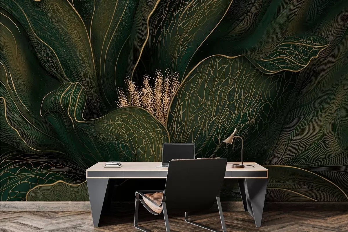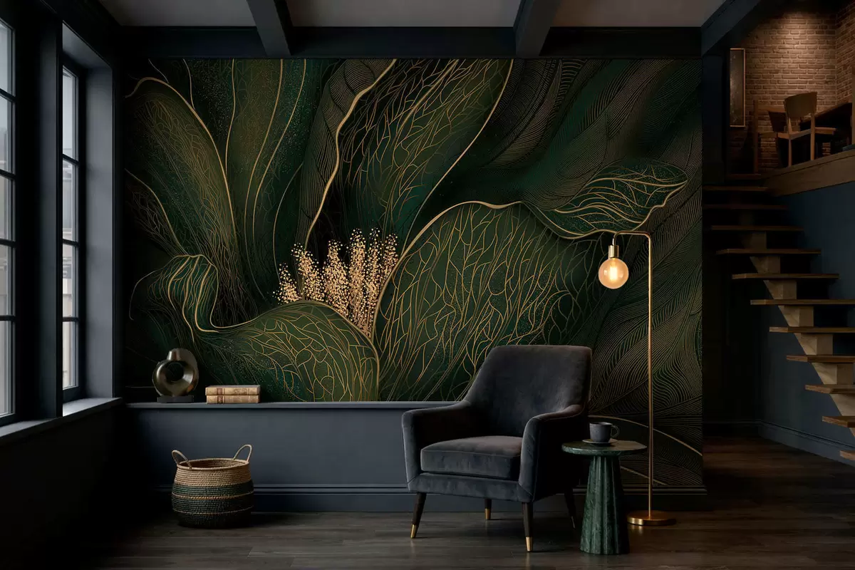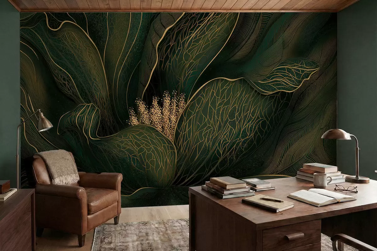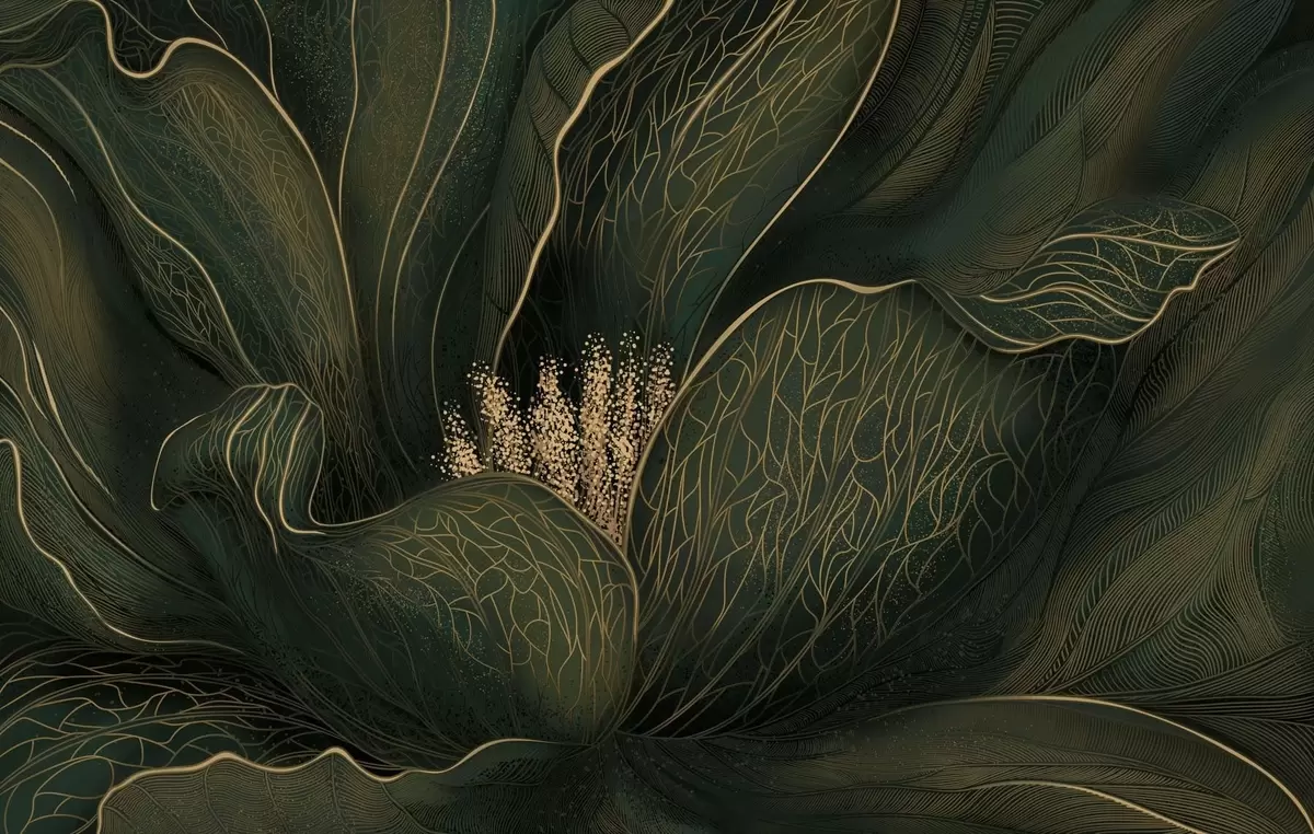 Fototapet Mörkgrön abstrakt blomma med fina linjedetaljer Nr. w05119v1