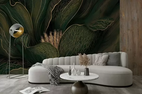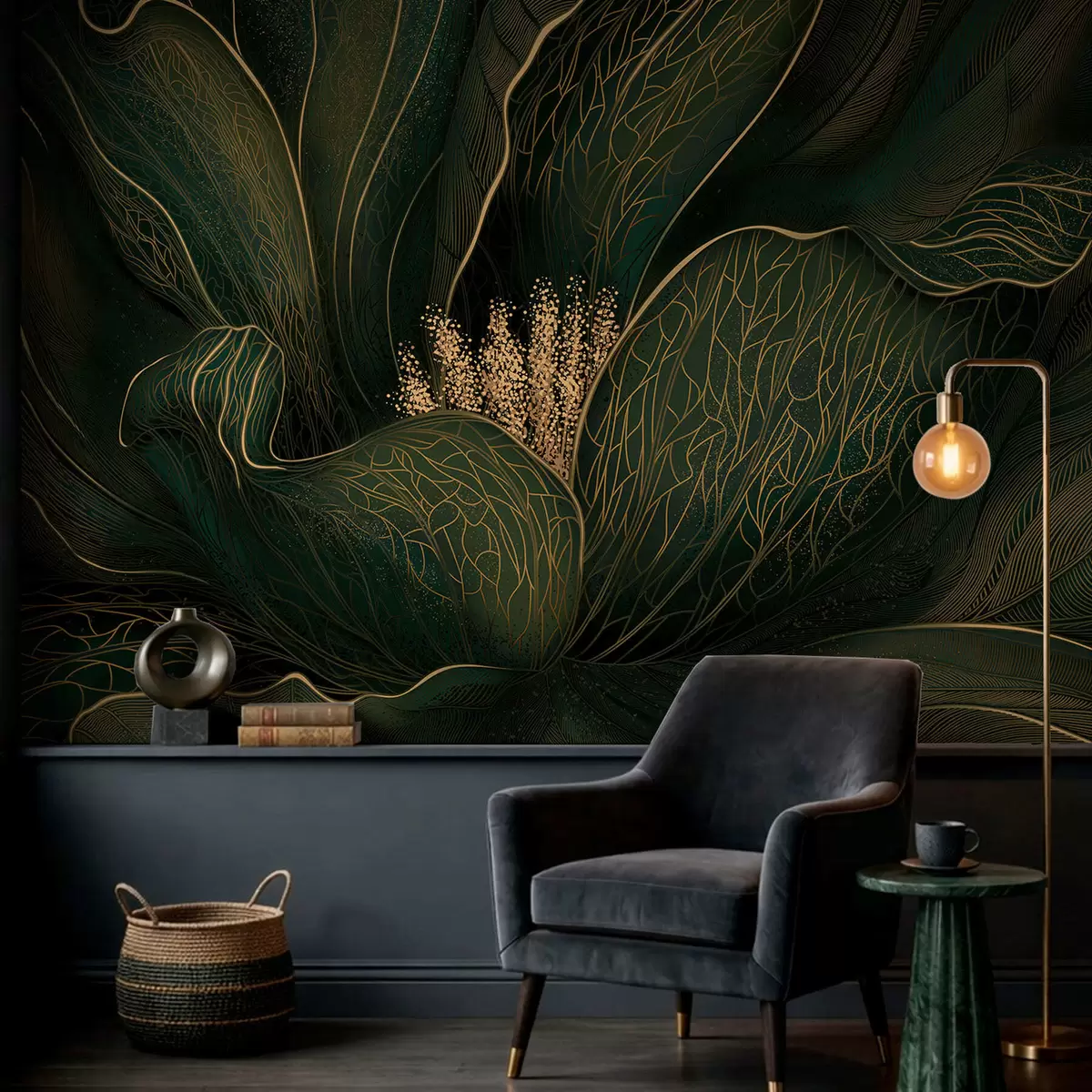 Fototapet Mörkgrön abstrakt blomma med fina linjedetaljer Nr. w05119v1