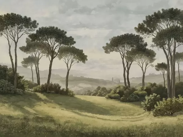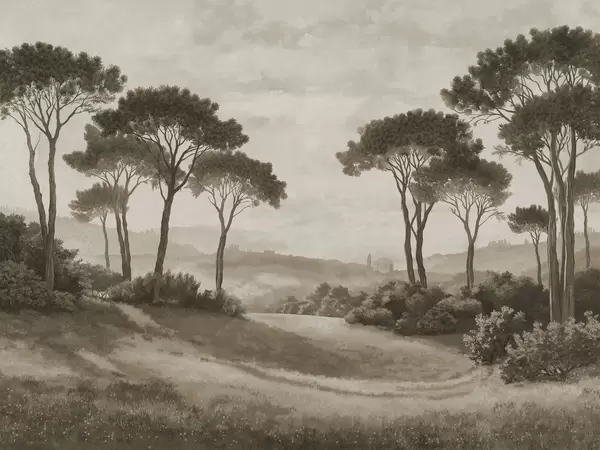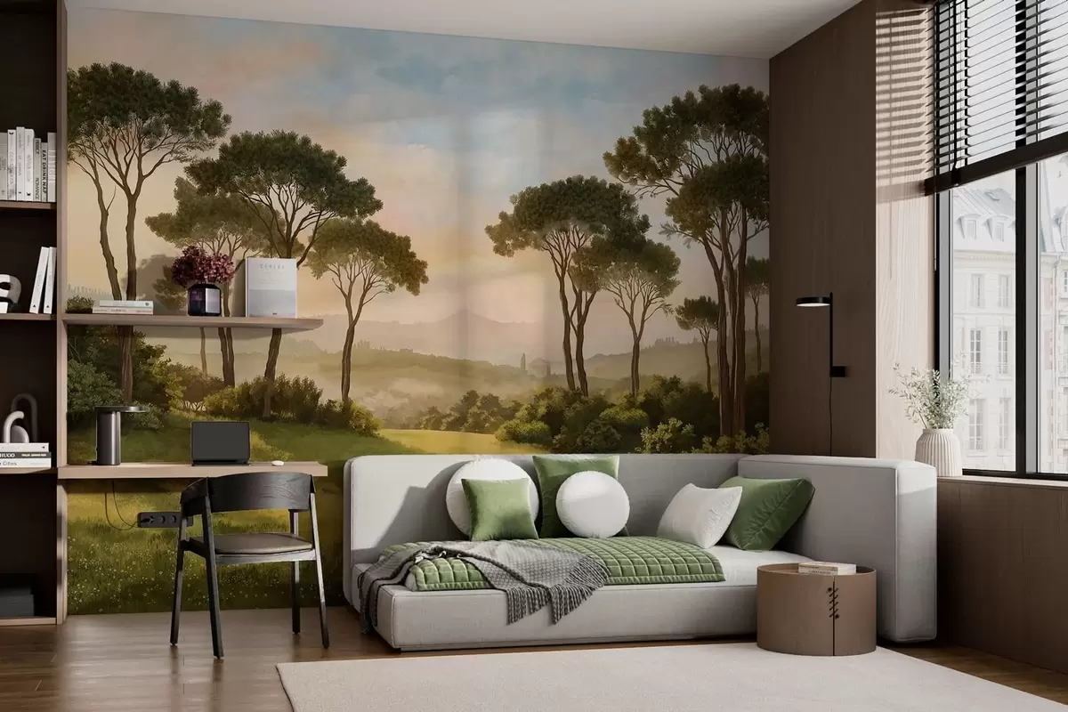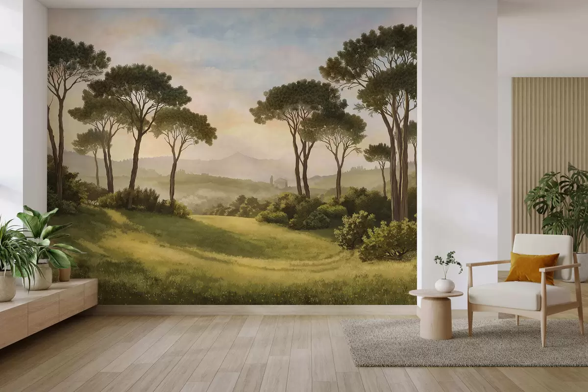 Fototapet Landskap med träd i det varma skymningsljuset Nr. w05122
