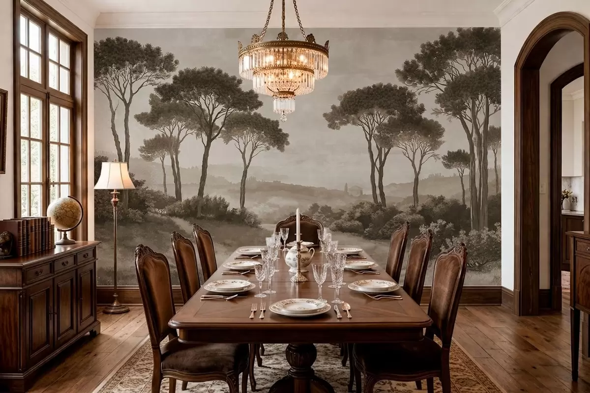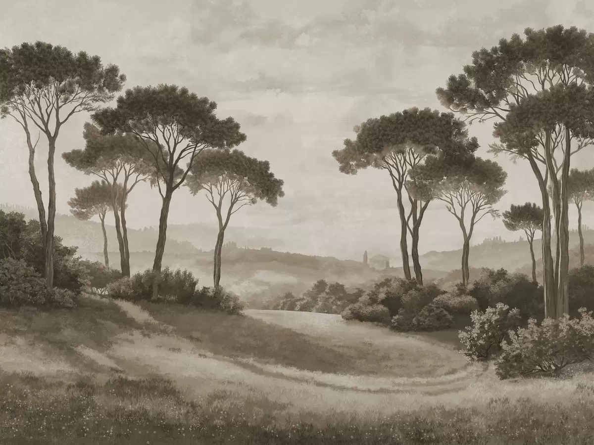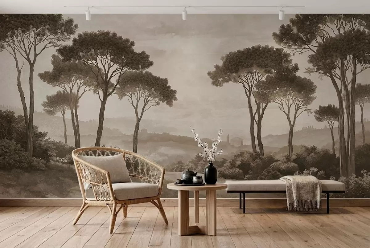 Fototapet Landskap med träd i vintage-sepiaton Nr. w05122v2
