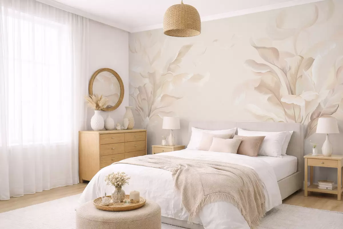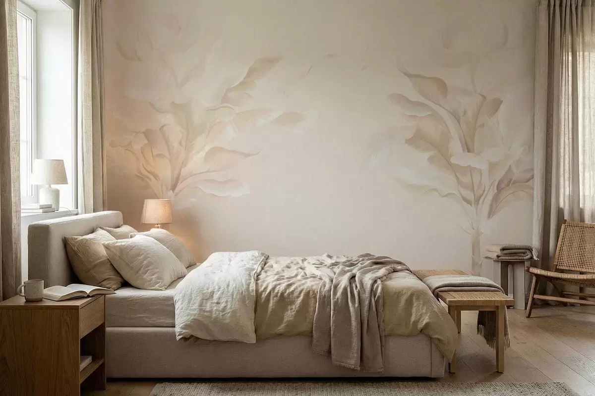 Fototapet Luftiga dekorativa växter i varma krämiga toner Nr. w05126