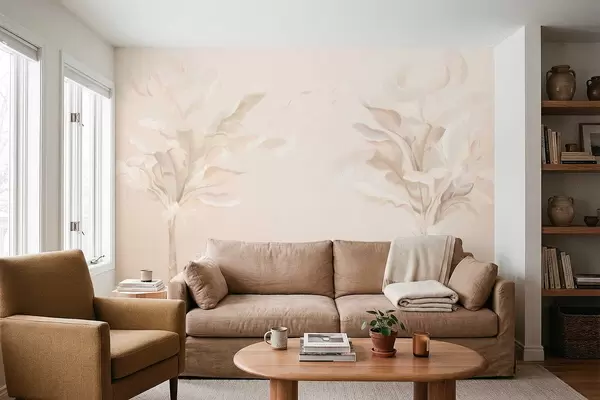 Fototapet Luftiga dekorativa växter i varma krämiga toner Nr. w05126