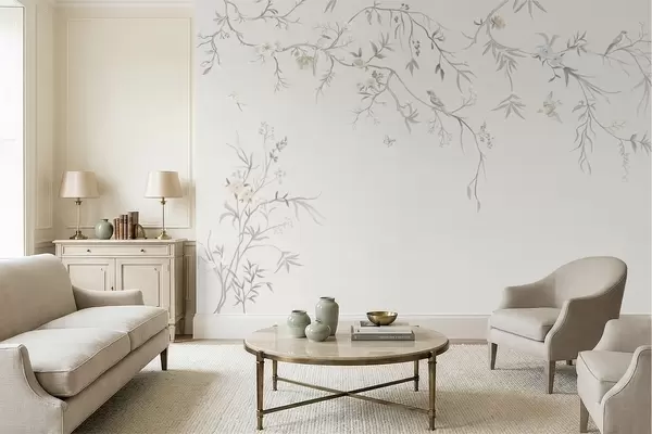 Fototapet Delikata blommor och fåglar på en kritvit bakgrund Nr. w05127