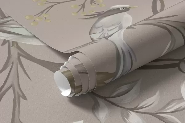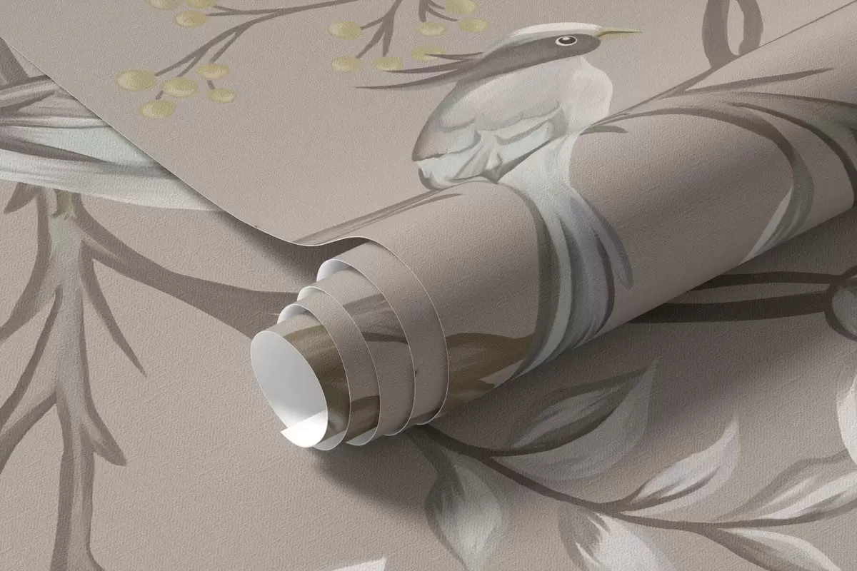Fototapet Blommigt ornament med fåglar på neutral bakgrund Nr. w05127v3