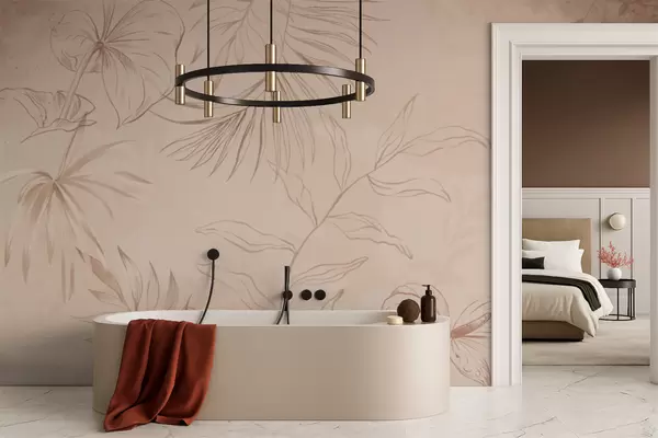 Fototapet Linjära växter på texturerad beige bakgrund w05128