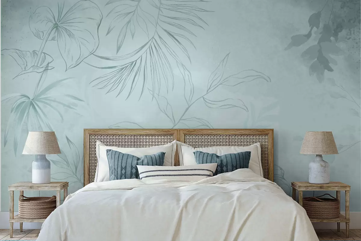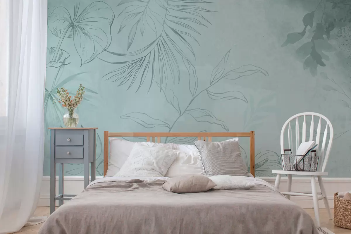 Fototapet Linjära växter på mjuk grönaktig bakgrund Nr. w05128v1