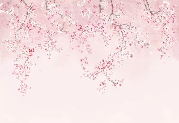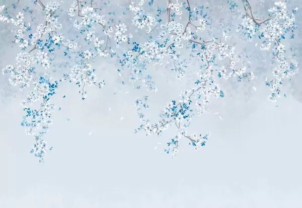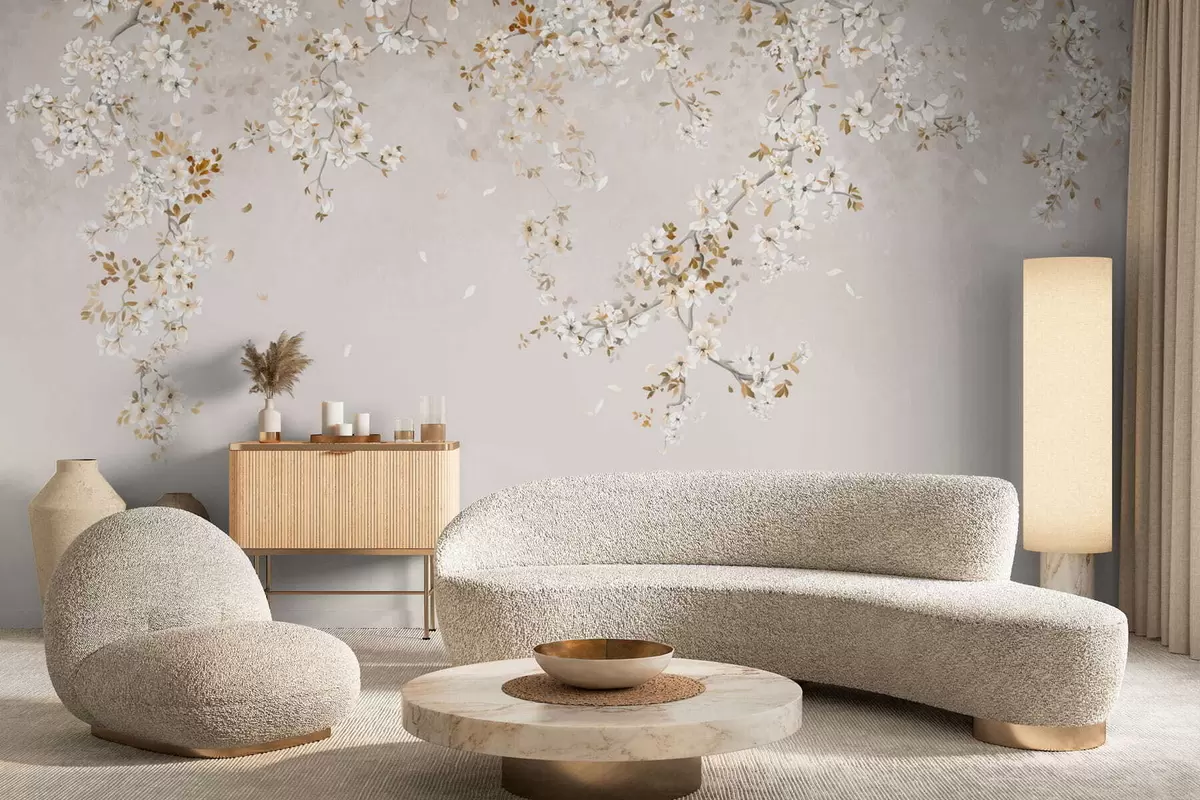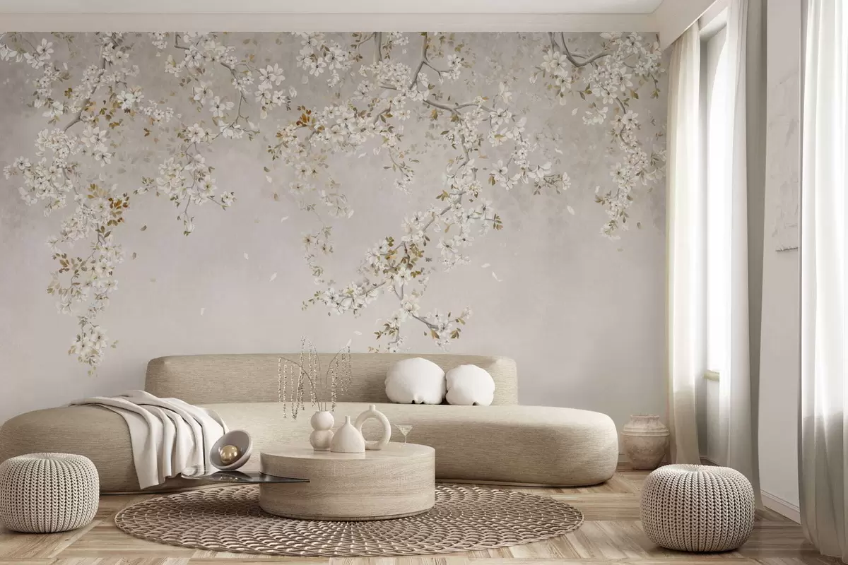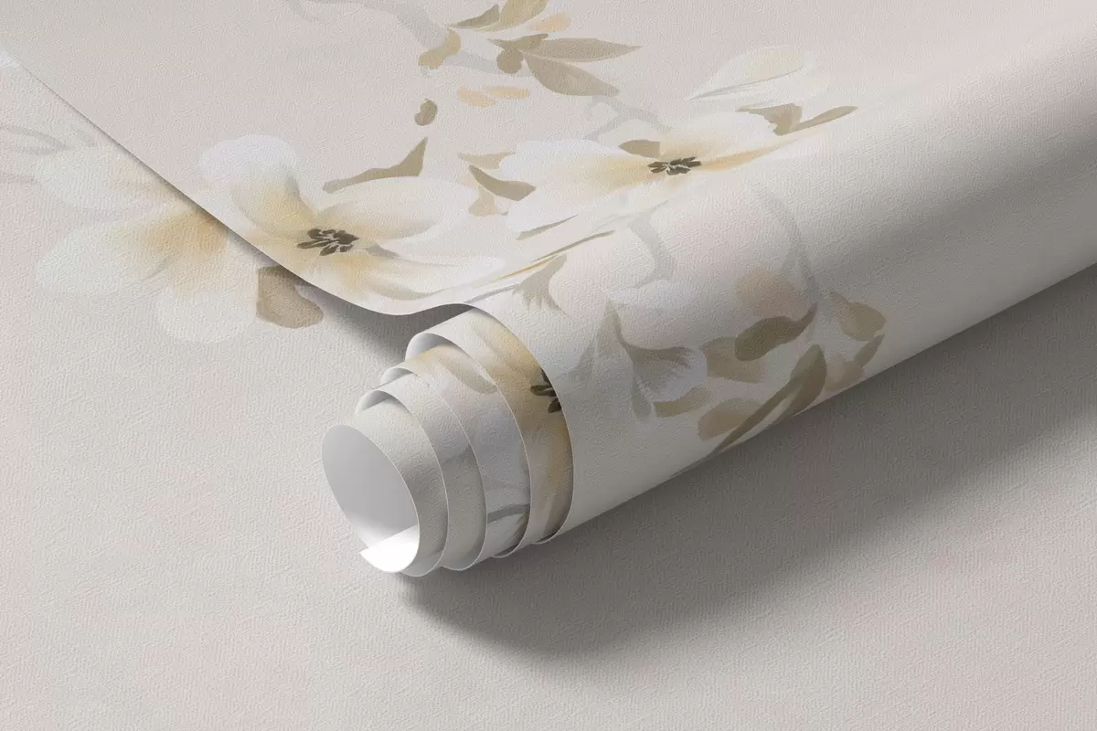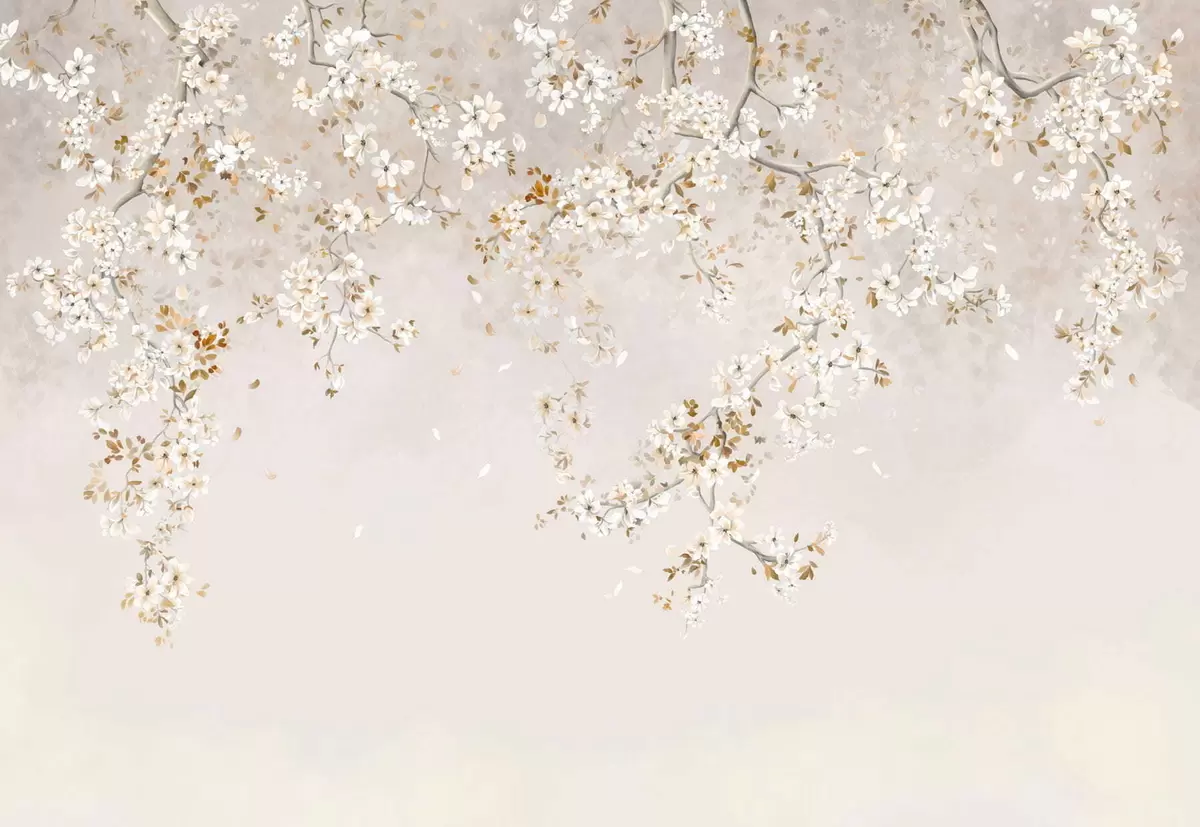 Fototapet Grenar med vita blommor på en mjuk beige bakgrund Nr. w05129