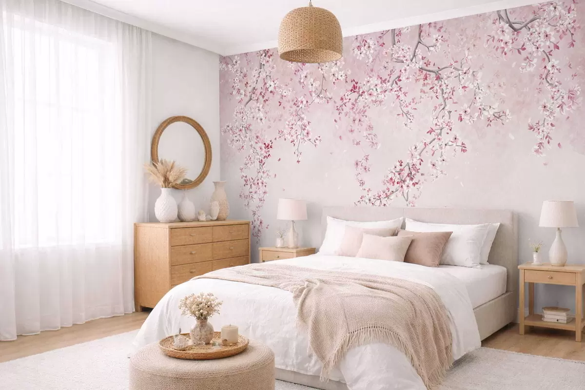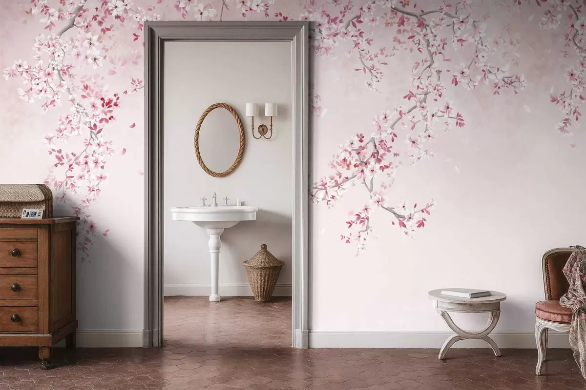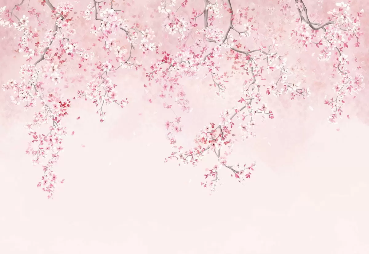 Fototapet Grenar med rosa blommor på en mjuk pastellbakgrund Nr. w05129v1