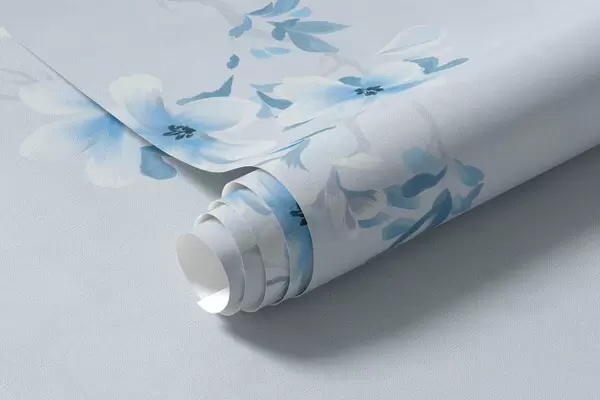 Fototapet Grenar med vita och blå blommor på en sval bakgrund Nr. w05129v2