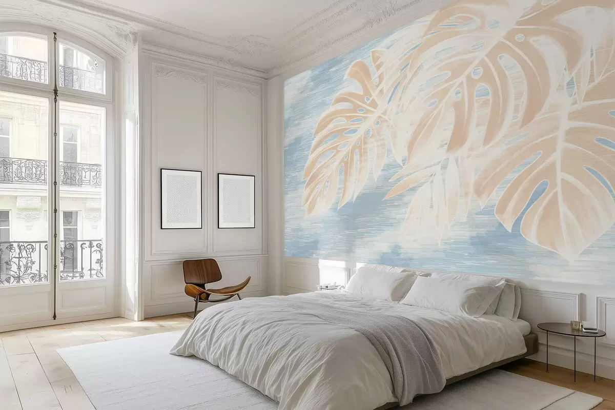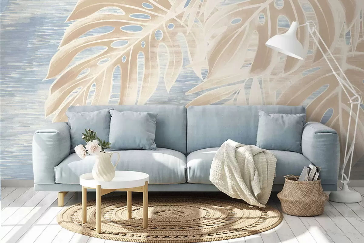 Fototapet Abstrakta blad i varma beige toner på en ljus bakgrund Nr. w05130