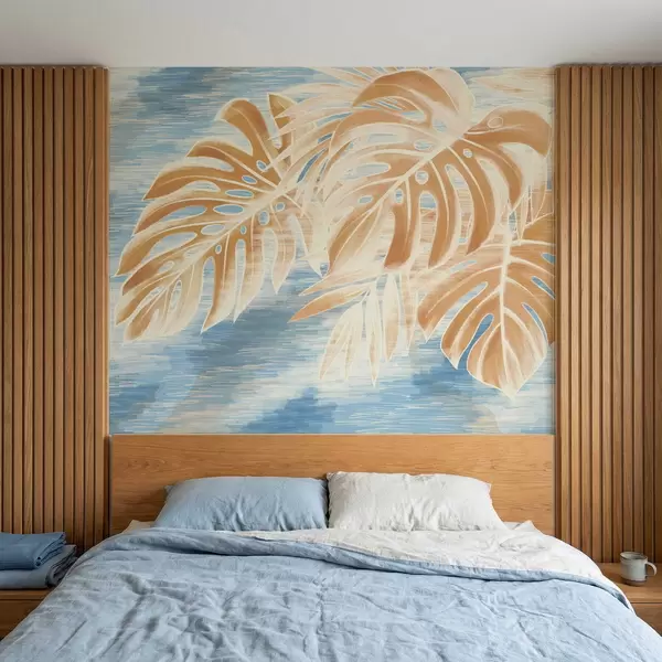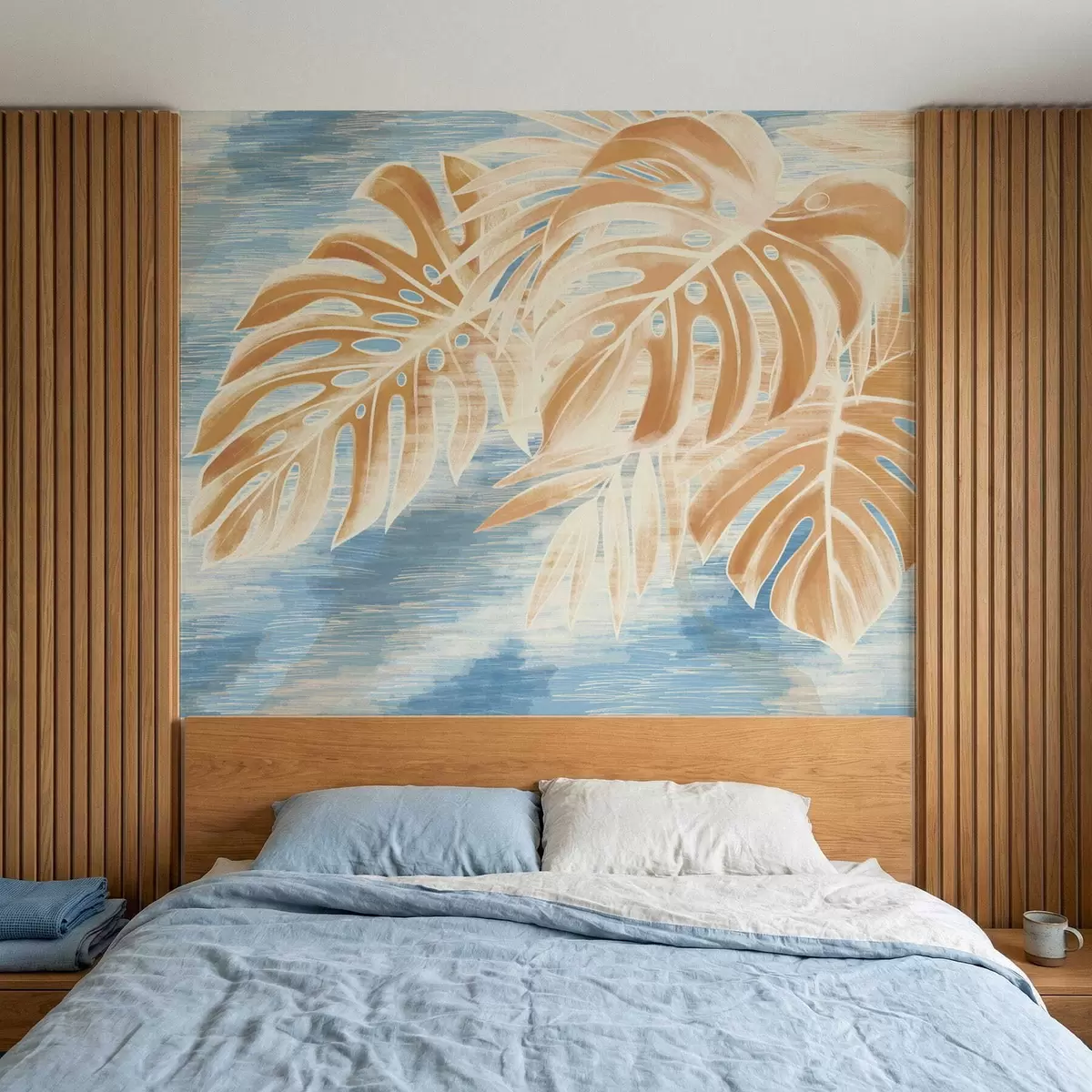 Fototapet Löv i ljusa sandtoner på blå bakgrund Nr. w05130v1