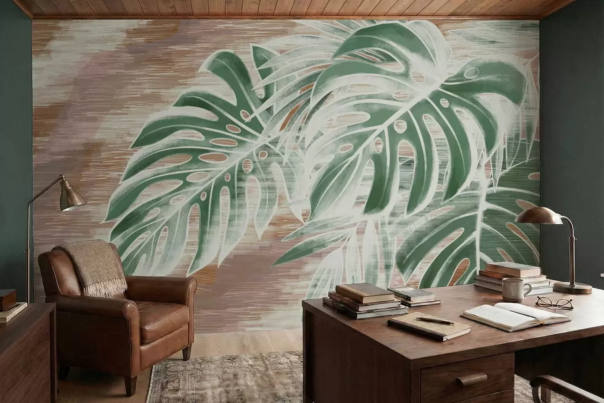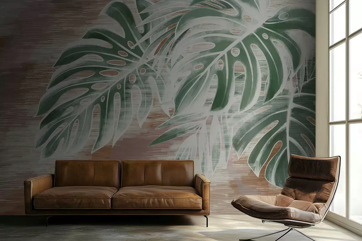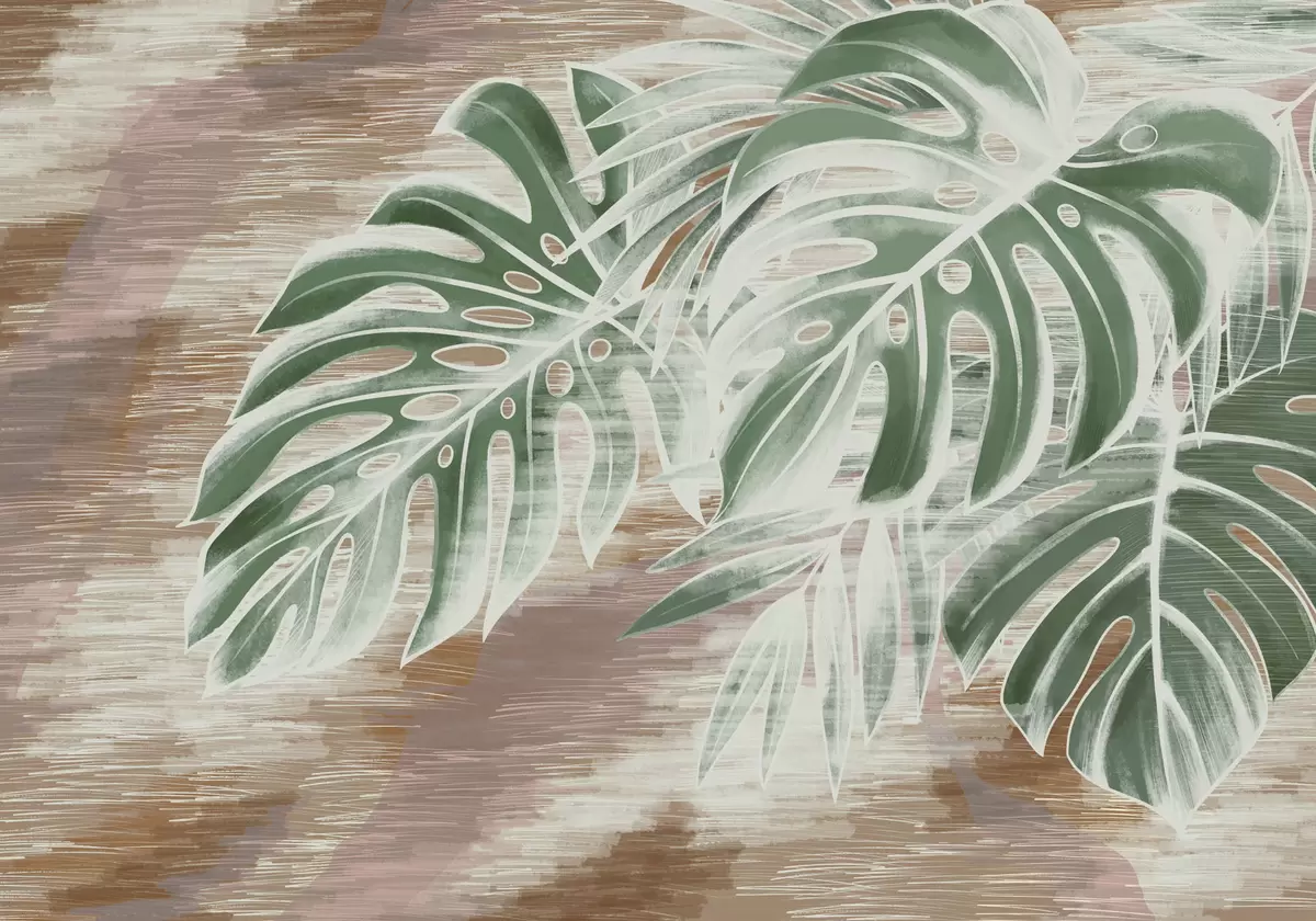 Fototapet Gröna blad på en varm texturerad abstrakt bas Nr. w05130v3