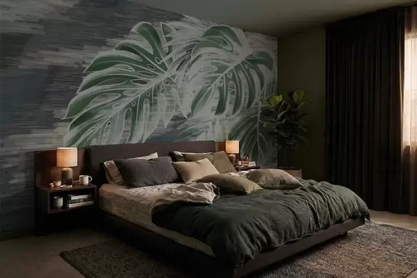Fototapet Mörkgröna blad på en strukturerad mörk bakgrund Nr. w05130v4