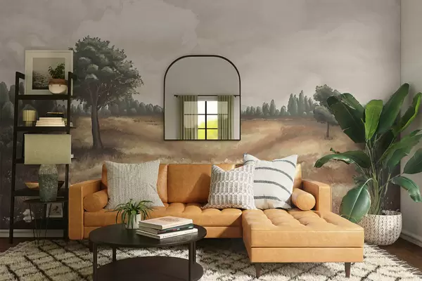 Fototapet Målat landskap med träd och öppet fält Nr. w05131