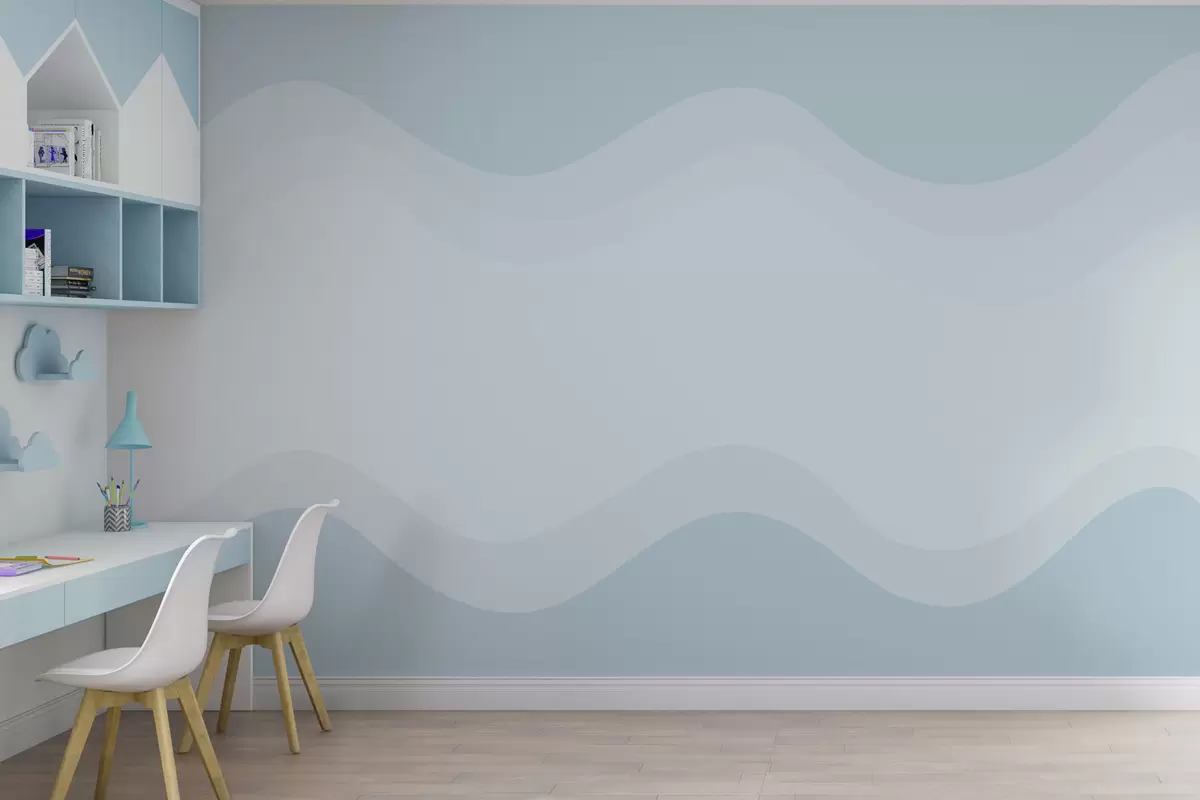 Fototapet Abstrakta vågor i ljusblå färgskala Nr. w05132v2