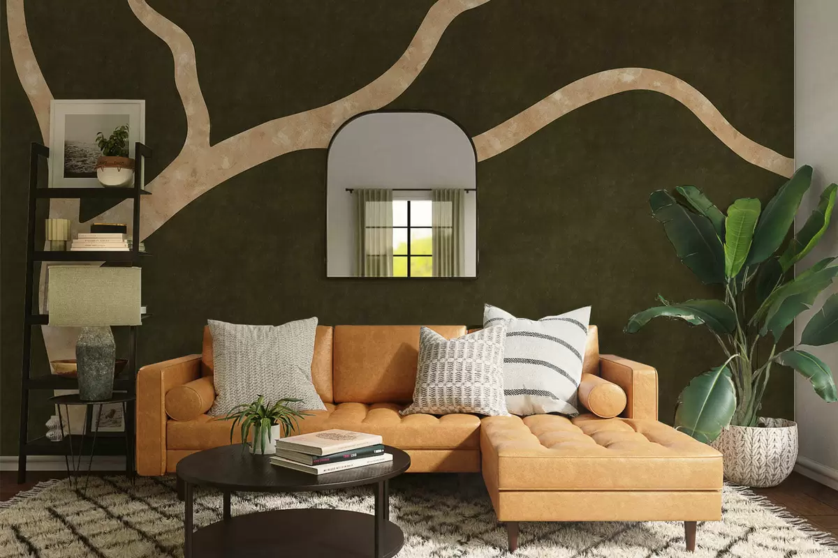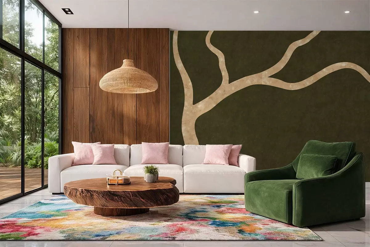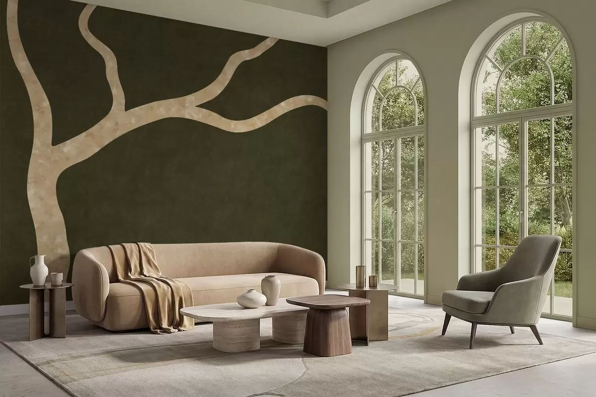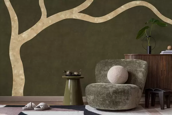 Fototapet Ljus gren på olivgrön bakgrund Nr. w05144v2